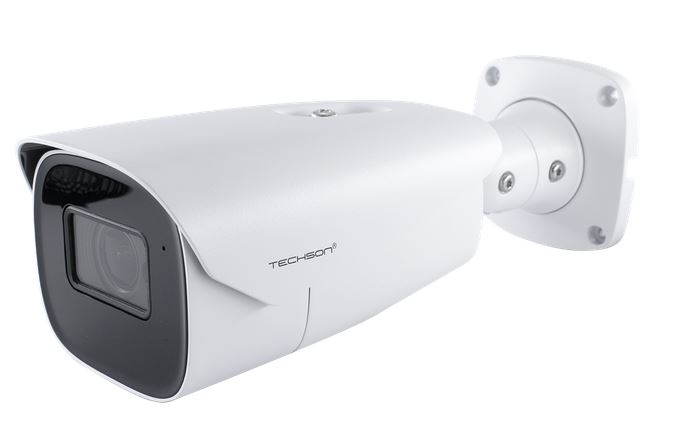 Techson SmartStart 4 megapixeles felbontású, kültéri csőkamera kivitelű IP kamera Az elérhető intelligens, analitikai funkciók a következők: vonalátlépés, területfigyelés, smd. Hibrid fény, SD-kártya, Valós WDR, Beépített mikrofon, Mikrofoncsatlakozó A kamera fix objektívjének fókusztávolsága: 2,8 mm. Beállítási módja: fix fókusz, látószöge: 94° Beállítható felbontások: 2560x1440, 2304x1396, 1920x1080 A készülék IP67 védettségű. A beépített megvilágítás típusa: IR LED, Fehér LED, Smart Light. A maximális megvilágítási távolság: 50 méter. IR világítási szög: 70° A képérzékelő (1/3collos CMOS) érzékenysége: 0,005 lux. A kamera valós, 120 dB-es WDR-rel rendelkezik. Beépített mikrofont tartalmaz. A kamera támogatja a H.264, H.265 tömörítési szabványt . Elektronikus zársebesség: 1/25 - 1/100000 Záridő: Auto ROI , Multicast AGC Zajcsökkentés: 3D DNR Széles dinamikatartomány: Valós WDR WDR : 120 dB Emellett a sávszélességet hatékonyan csökkentő ROI is elérhető. A készülék a következő eseményekre riaszt, és továbbítja azokat a rögzítőnek: mozgás, videoanalitika, szabotázs, tárolóhiba. A kamera tápellátása történhet PoE rendszerű NVR, switch vagy tápfeladó segítségével is. Mikrofonbemenettel rendelkezik. A készüléken kártyafoglalat található az SD kártyák számára. SmartStart kategória